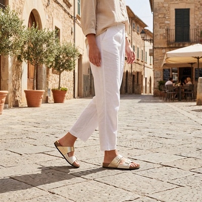 A Batz Mallorca Beige-Gold a klasszikus kényelem nőies, finoman ragyogó változata – mert a hétköznapok is megérdemlik az eleganciát.